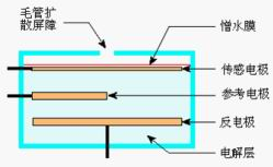 電化學(xué)測(cè)試方法又稱(chēng)為定電位電解法,是*對(duì)二氧化硫的標(biāo)準(zhǔn)測(cè)定方法之一。(HJ/T 57-2000《固定污染源排氣中二氧化硫的測(cè)定定電位電解法》)。其核心器件電化學(xué)傳感器的結(jié)構(gòu)如圖。